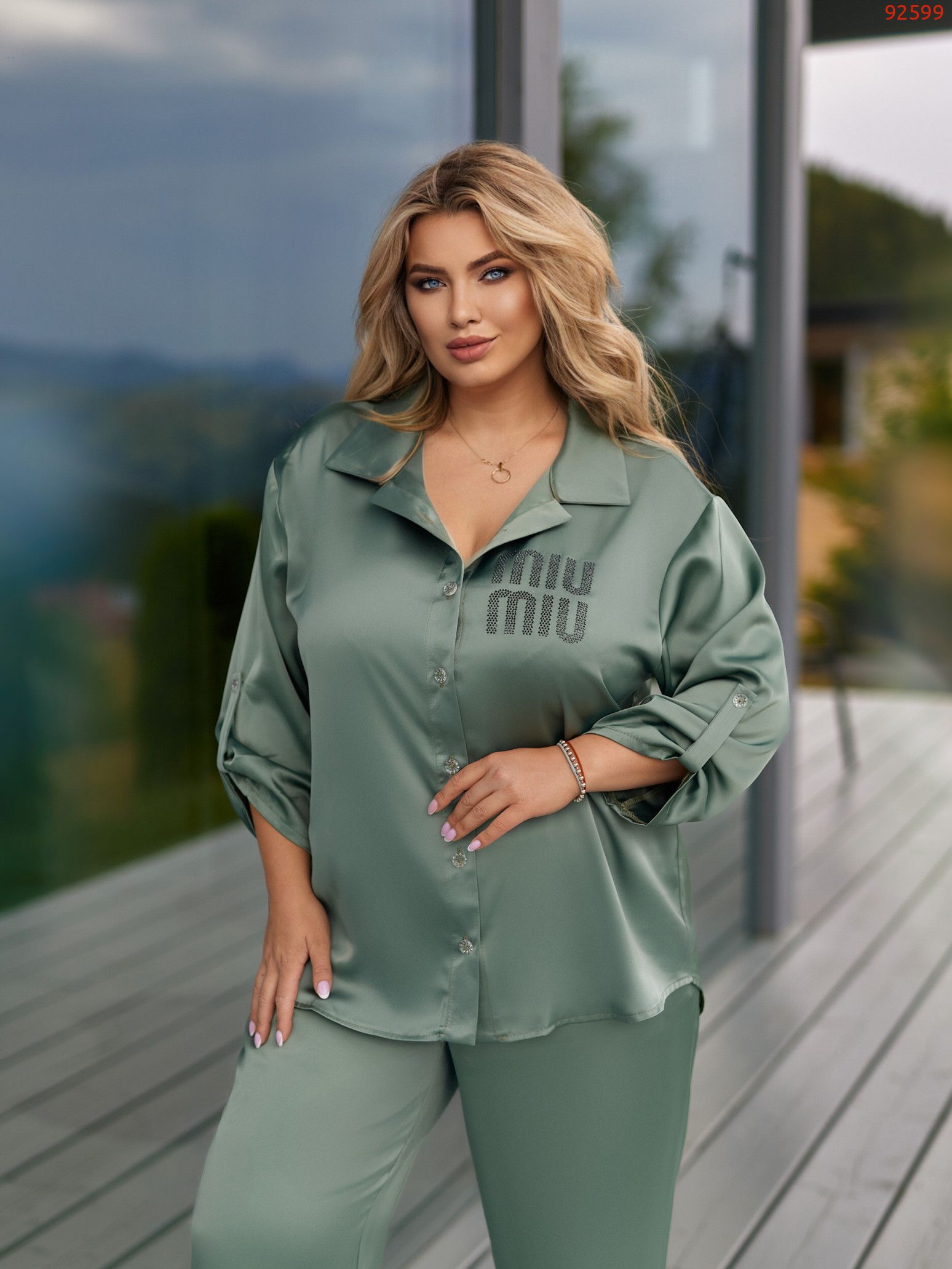 ▪︎ Сорочка застібається на декоративні ґудзики, має комірець та рукави 7/8 з фіксацією.