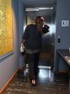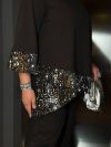 Талія підкреслена тонким чорним ременем, створюючи жіночний силует. Спідниця, що струмує, довжиною нижче коліна, що робить образ витонченим і елегантним.
