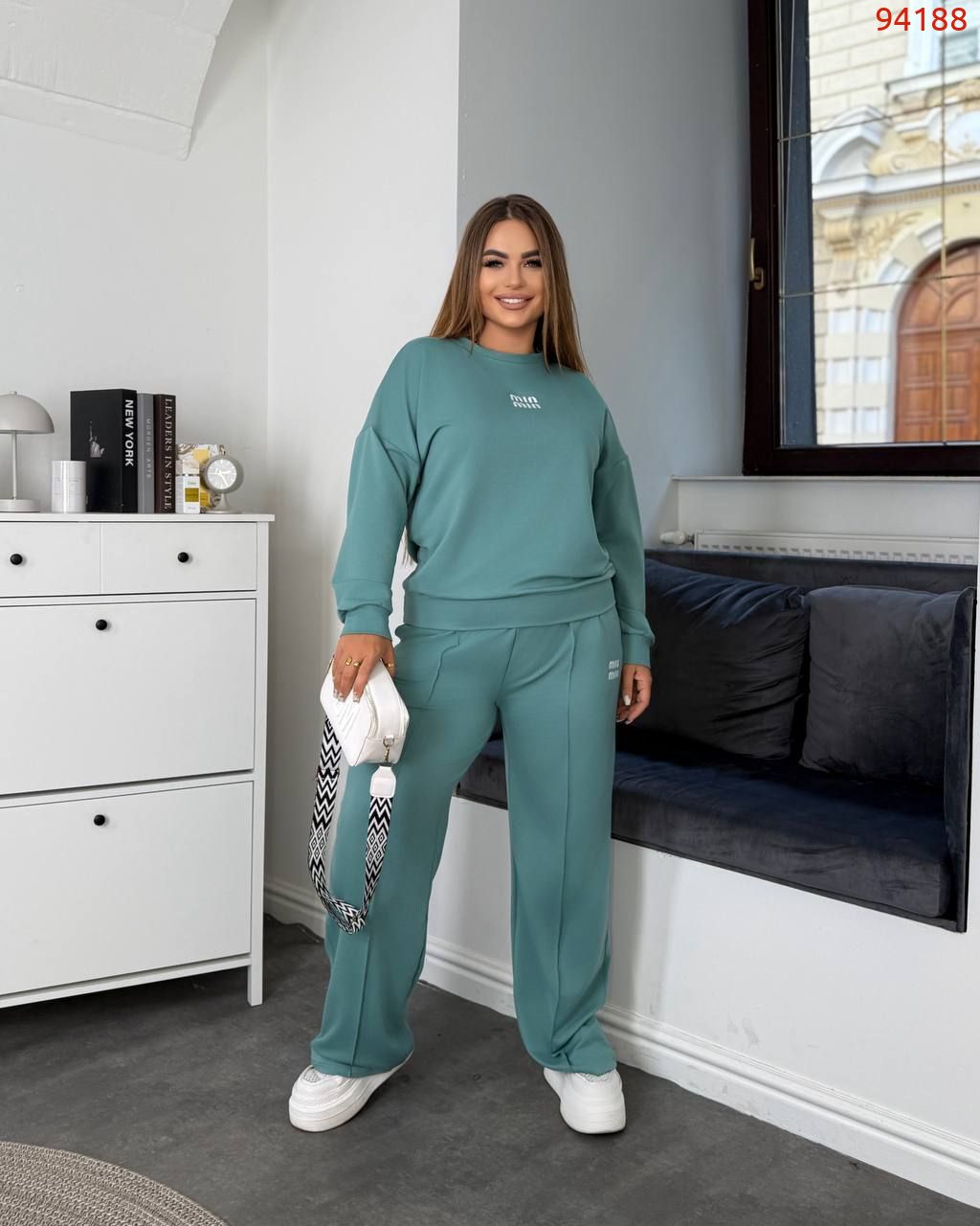 Довжина кофти 65 см., довжина брюк 104 см. Костюм повномiрний майже на розмiр, добре тягнеться.