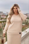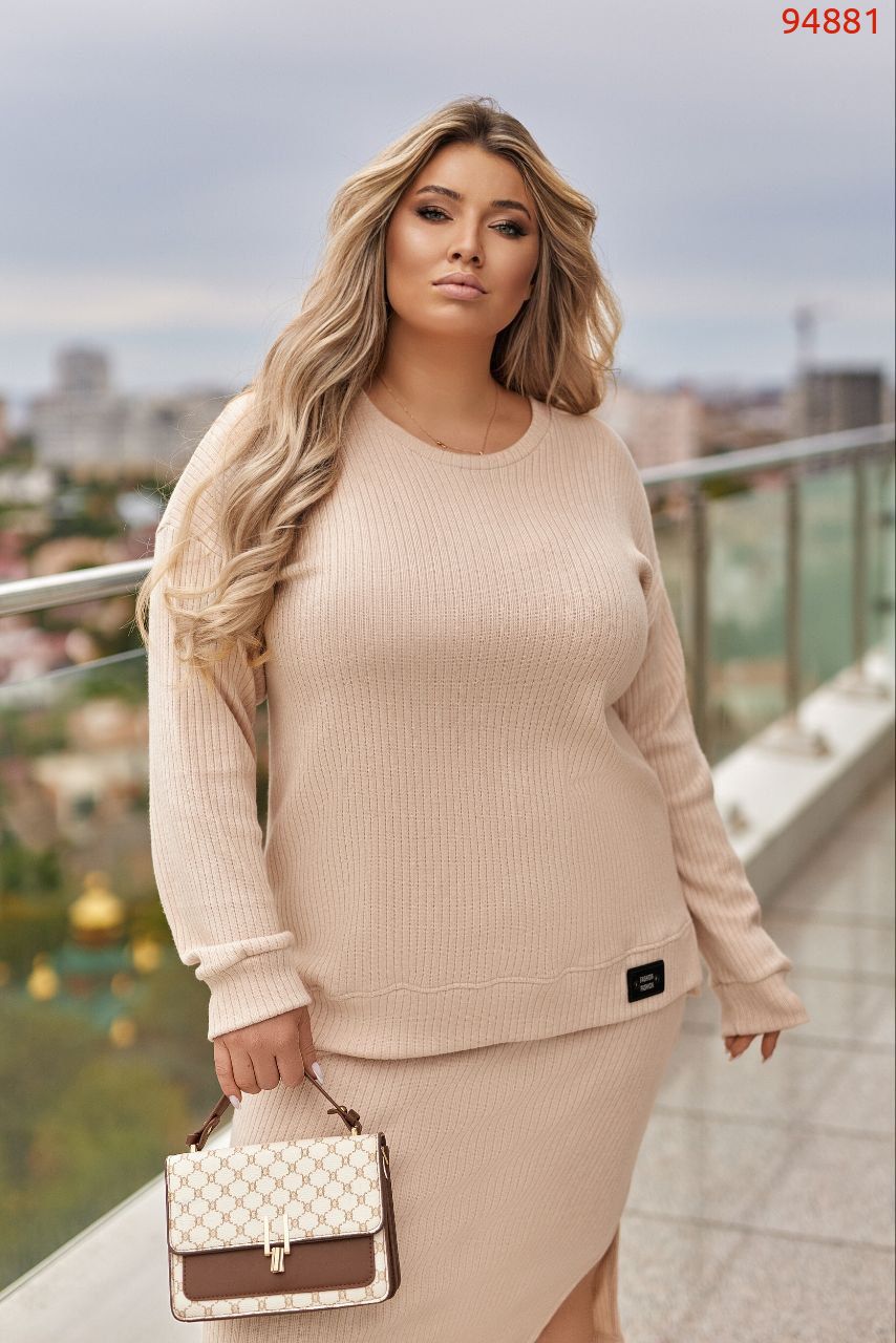 Елегантний крій спідниці підкреслює силует, спідниця на резінці, має розрізи по боковому шву . Перед светра коротший зад довший.