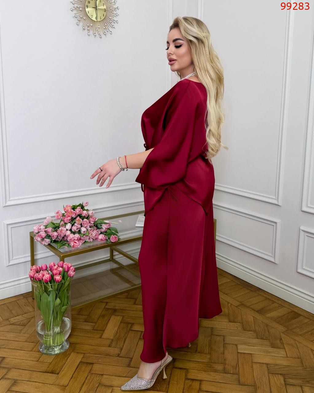 Трендовий костюм з спідницею,класна блуза летучка бордо №99283