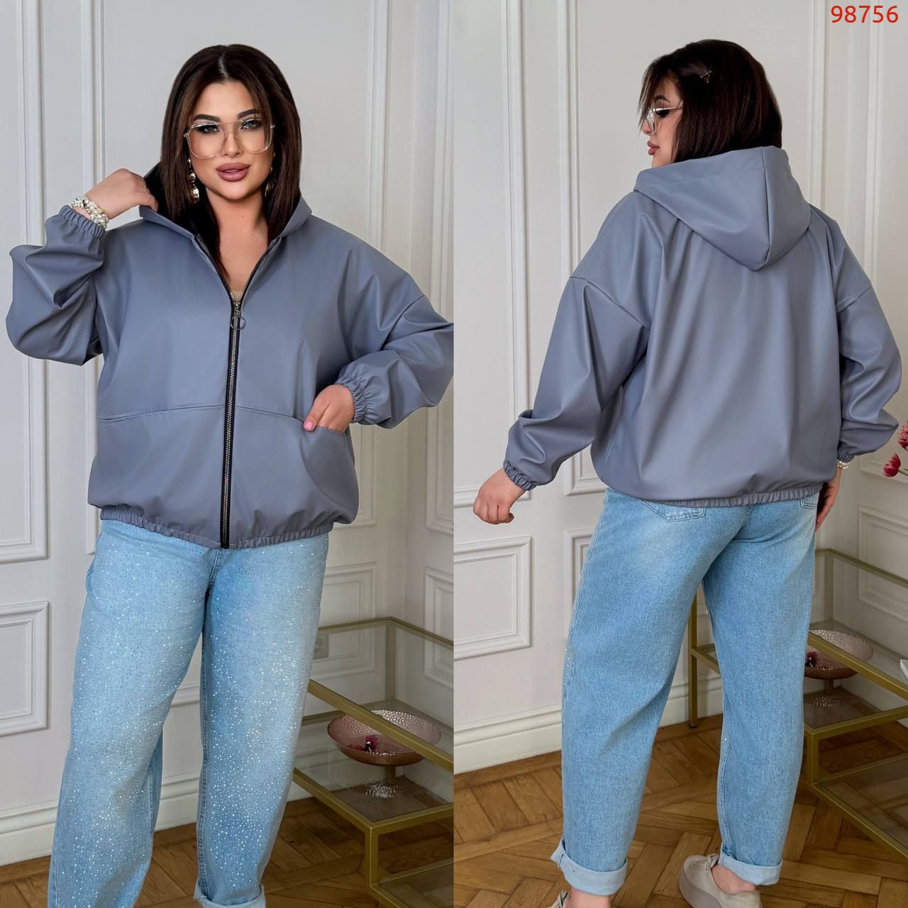 Куртка на блискавці з капюшоном , з кишенями , низ та рукав на гумці .