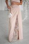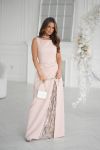 Елегантна сукня з гладкої костюмної тканини з розкішною мереживною вставкою, прикрашеною глітером.
