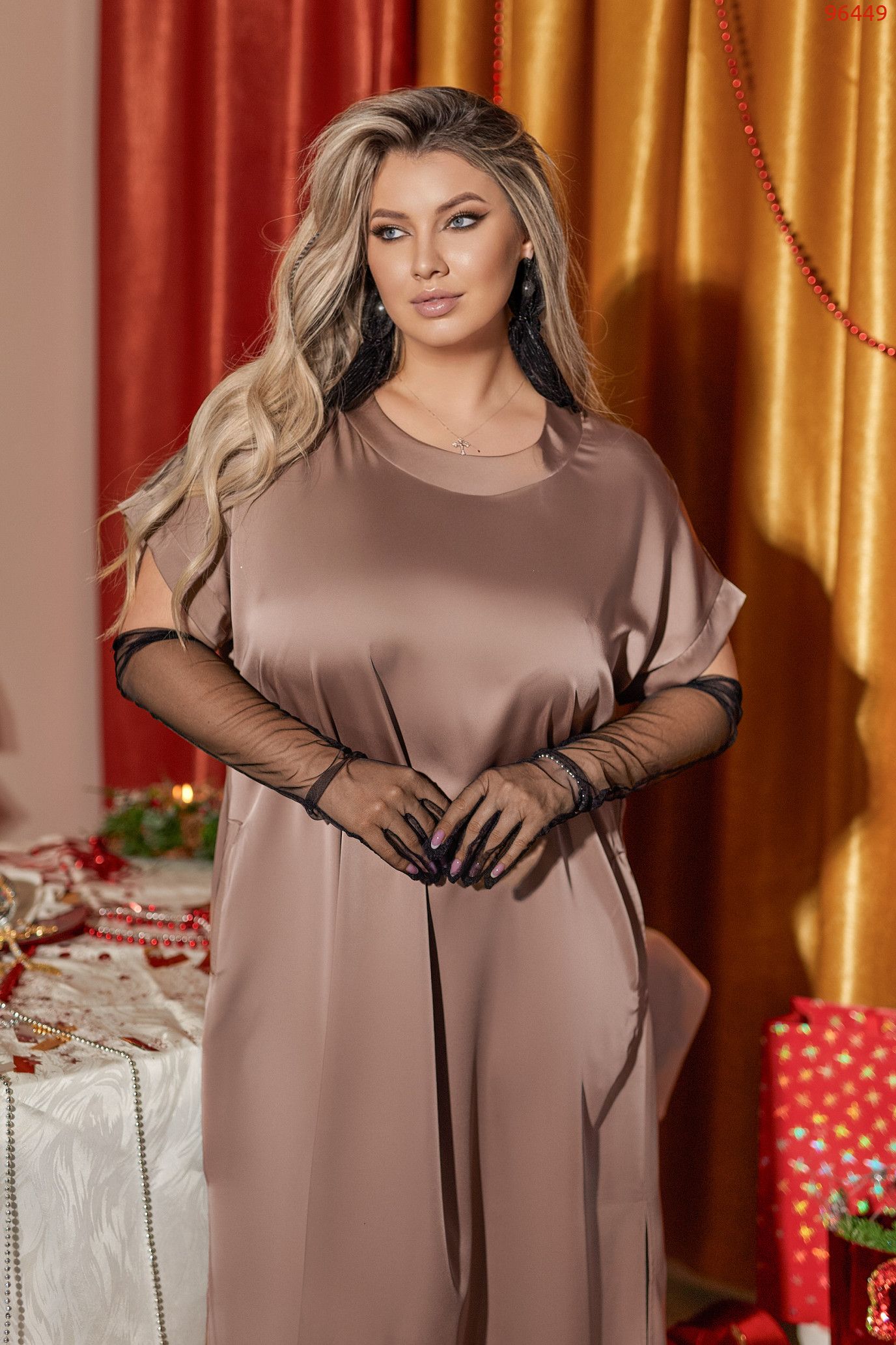 ✨ Комплект складається з розкішної сукні та легкої шифонової накидки — універсальний варіант для свят, виходів у ресторан та особливих подій.