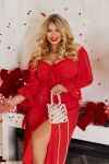 Тканина: софт-шовк. Сукня можна моделювати: мотузочки, розташовані в районі грудей, можна зав'язати бантиком або зробити виріз декольте глибшим. Позаду шнурівка – регулює приталеність.