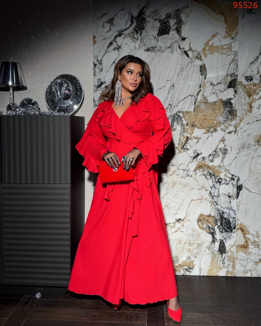 Довжина 143см, одягається на запах. Ідеальна посадка. Спідниця-напівсонце – не повнить. Легке, приємне до тіла. Прикрашення- паси - Тренд цього сезону. Вони роблять сукню повітряною , додають шарму