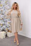 58-60 ОГ 116 см, талія не в розтягнутому стані 45 см, дл рукава 65 см, довжина сукні 103 см, бедра 140 см.