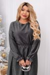 54-56 ОГ 110 см, талія не в розтягнутому стані 41 см, дл рукава 64 см, довжина сукні 102 см, бедра 130 см.
