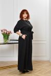 Сукня має відрізну лінію талії, верх силуету «летюча миша», рукав довжиною по лікоть. Виріз горловини круглий. Спідниця у формі трапеції. В бічних швах оброблені кишені. Пояс із основної тканини в комплекті.