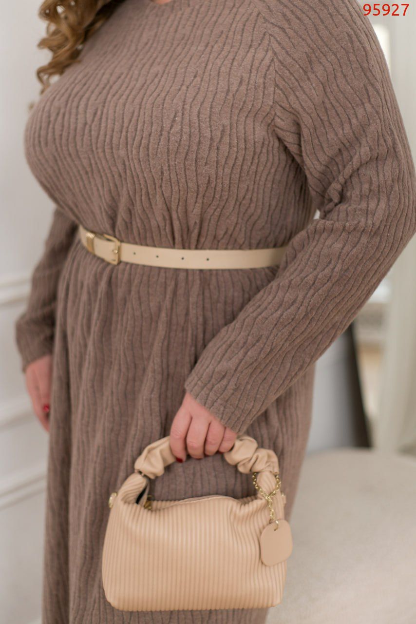 Сукня з м’якої, приємної до тіла тканини створена для тих, хто цінує комфорт і елегантність. Прямий крій моделі чудово підходить для будь-якої фігури, забезпечуючи легкість і свободу рухів. Довгі рукави додають практичності, а напівкруглий виріз горловини підкреслює лаконічність і стиль. Завершує образ акуратний шов позаду, який додає витонченого акценту. Сукня може бути вдягнена як самостійно, так і з поясом, що дозволяє створювати різні образи, додаючи ще більше індивідуальності вашому стилю. Ідеальний вибір як для повсякденного носіння, так і для особливих моментів!