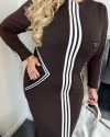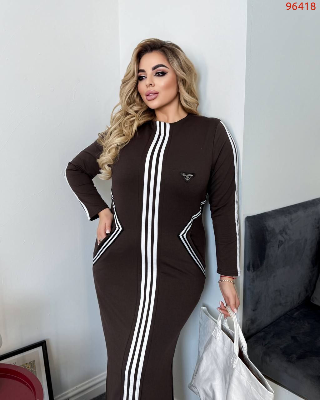 Плаття приталеного крою , прикрашене спереду лампасами в три ряди ( подовжує силует та робить фігуру більш витонченою ).