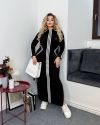На рукавах та кишенях чорно-білі лампаси , з боків кишені , на грудях прикраса , по низу з боків розрізи.