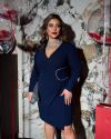 Стильна сукня з ефектом запаху та виразною прикрасою на талії – створена для святкових подій та вечірніх виходів.