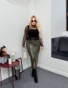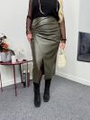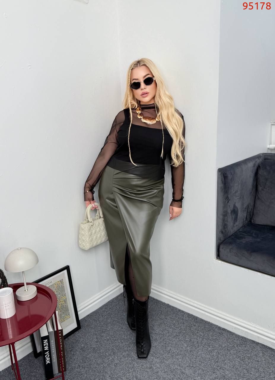 Спідниця-міді жіноча зі штучної шкіри, модна облягаюча спідниця.