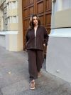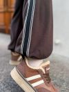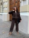 Штані - прямі, із високою посадкою, з кішенями у бічних швах, по низу також утяжка ).