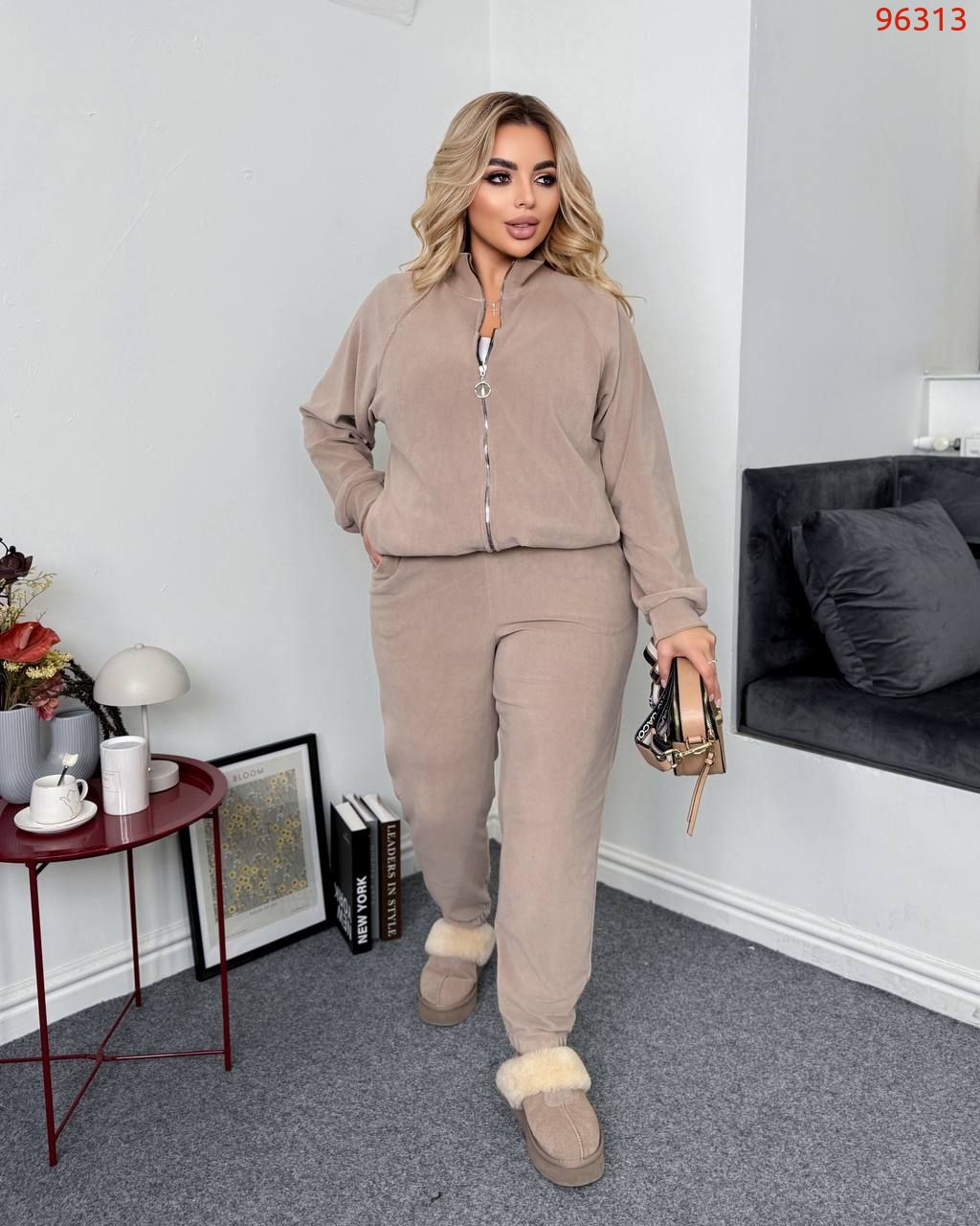 Теплий спортивний костюм: (кофта на змійці з кішкнями, по низу фіксатор з утяжкою + джогери з високою посадкою, з кішенями).