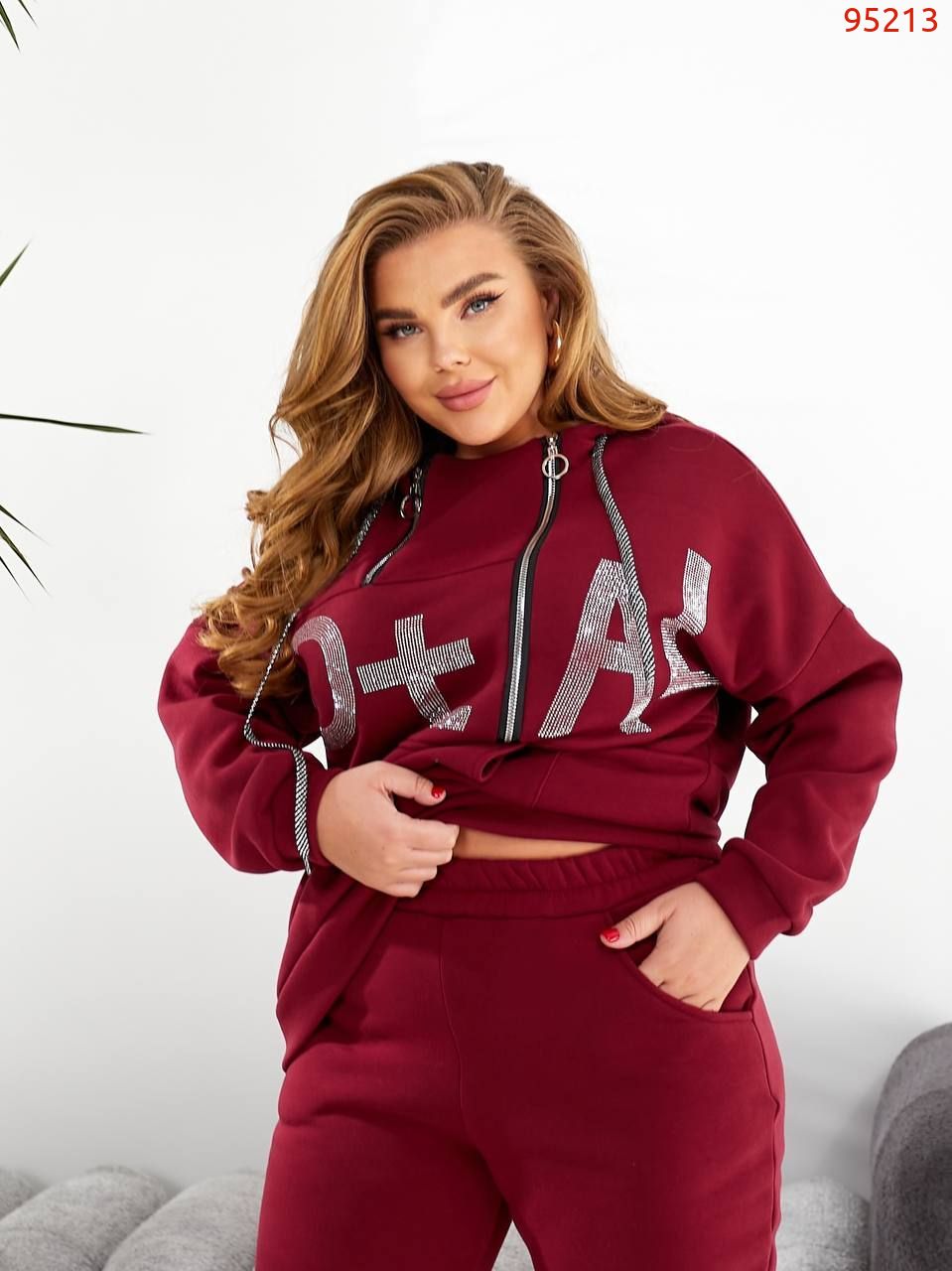 Кофта вільного крою, зручний глибокий капюшон, декорована камінням.
