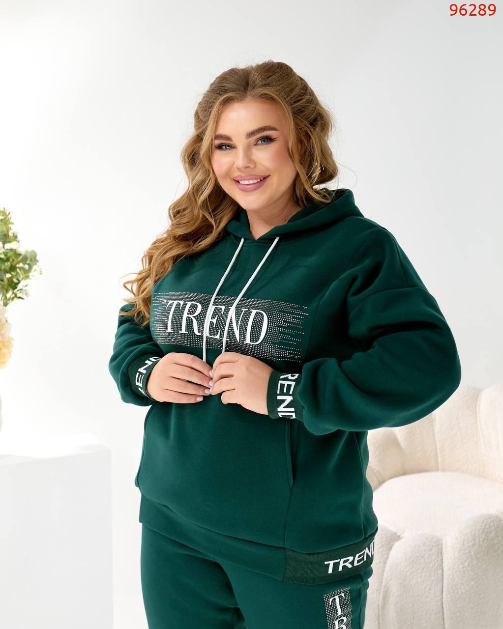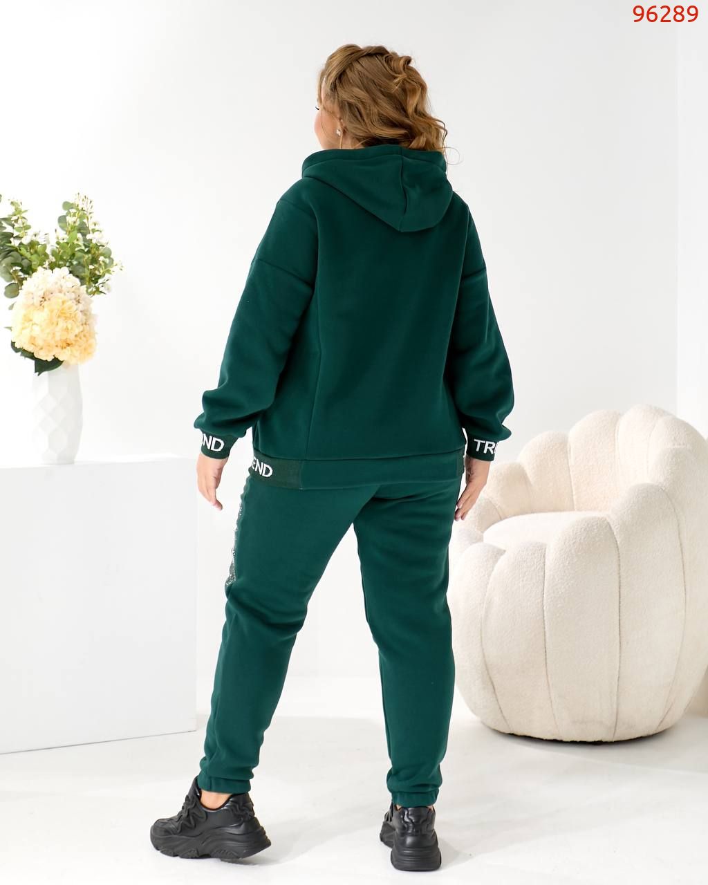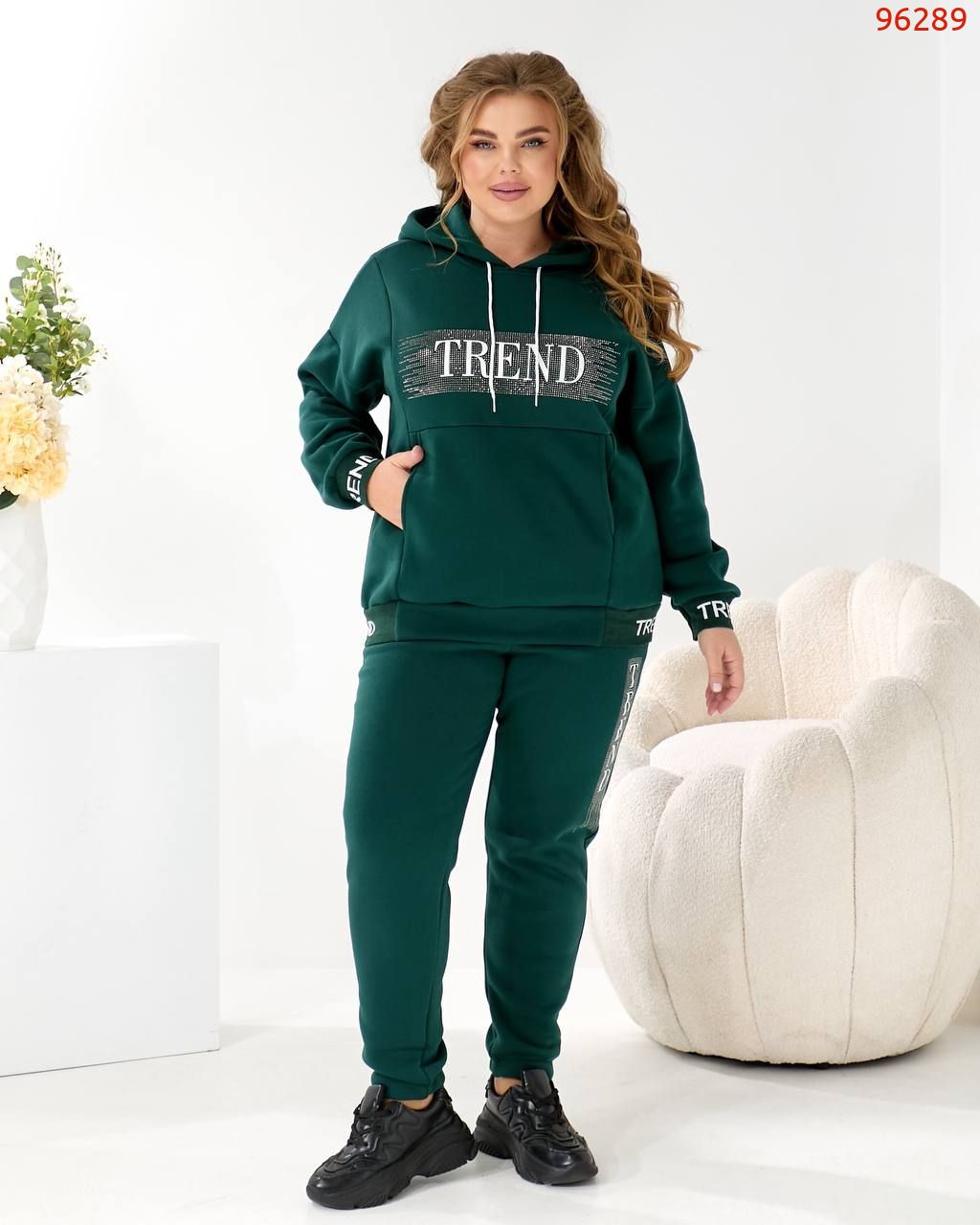 Будь завжди в «Тренді». Худі Oversize з капюшоном та яскравим акцентом: принт TREND з мерехтливими стразами/блиском (видно на фото!) + Джогери з м'якої тринитки на флісі!