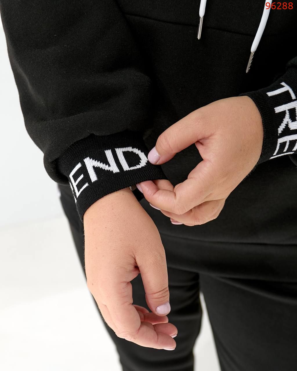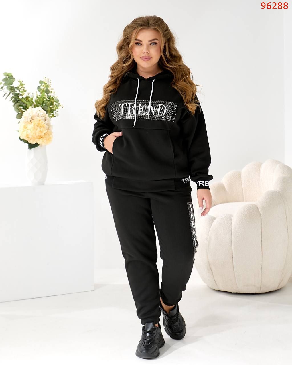 Будь завжди в «Тренді». Худі Oversize з капюшоном та яскравим акцентом: принт TREND з мерехтливими стразами/блиском (видно на фото!) + Джогери з м'якої тринитки на флісі!