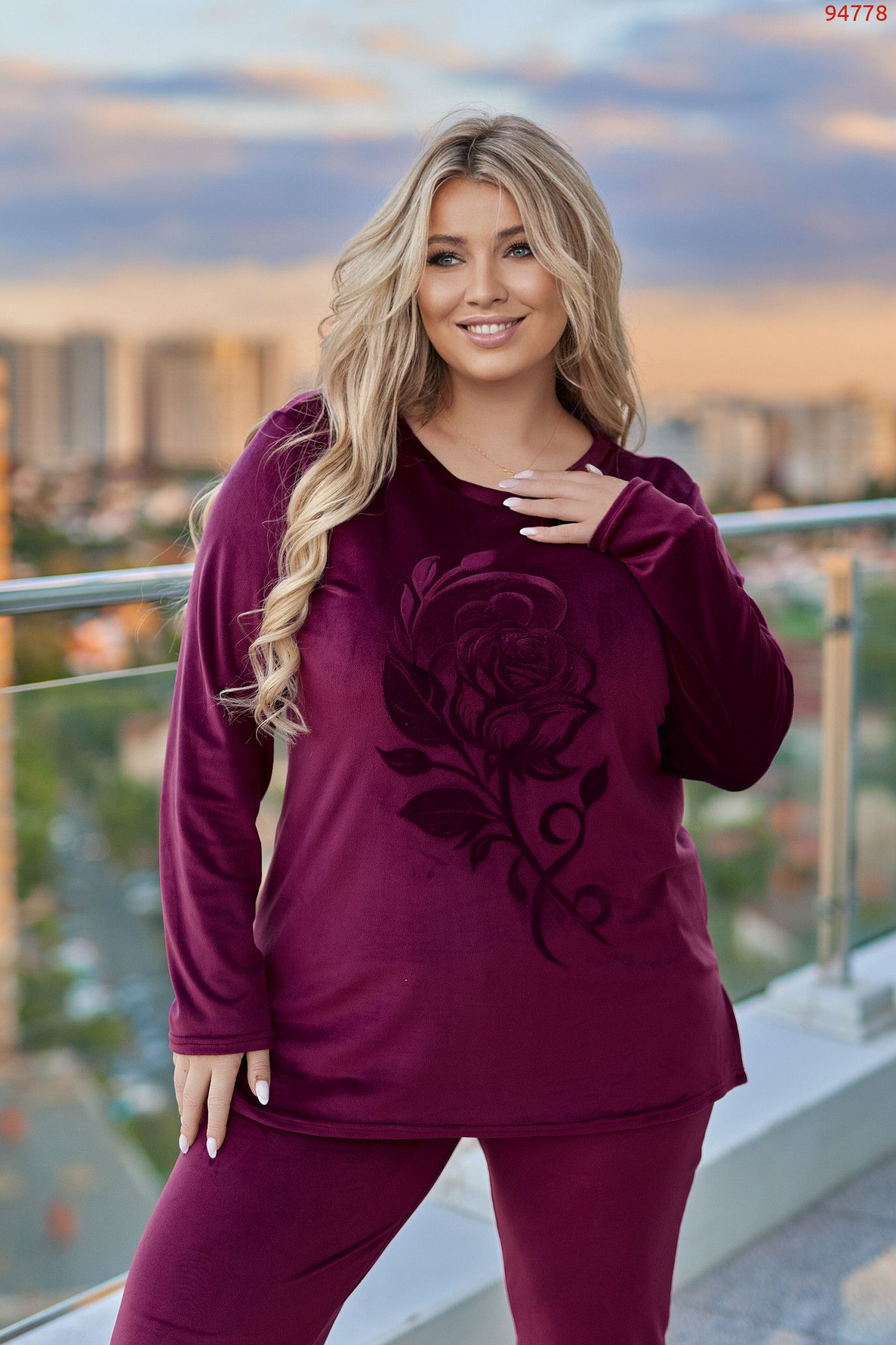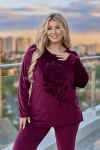 ●Світшот вільного крою з довгим рукавом, прикрашений аплікацією з того ж велюру у вигляді об’ємної квітки на грудях.