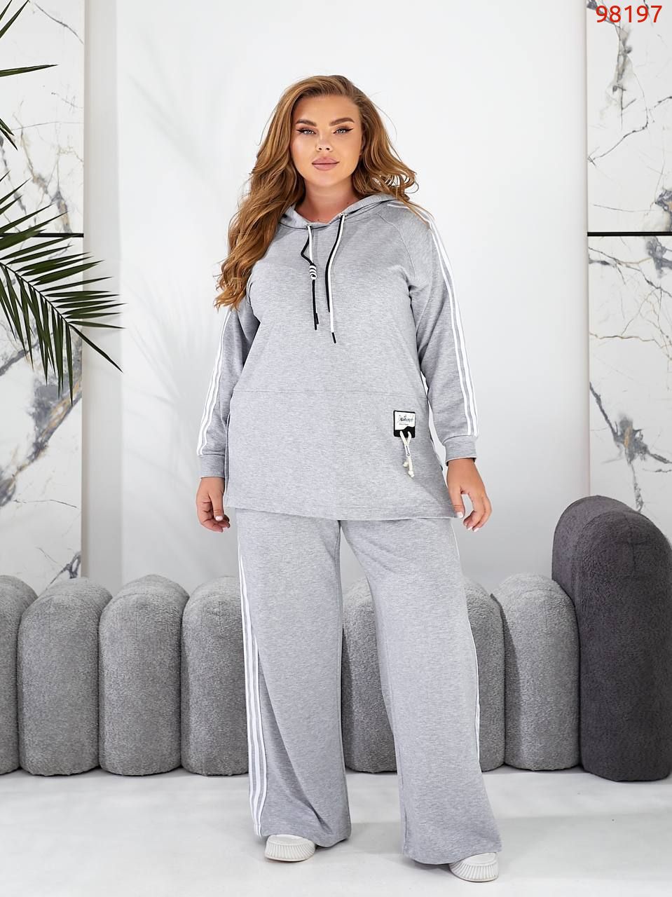Костюм спорт с штанами паллацо сірий №98197
