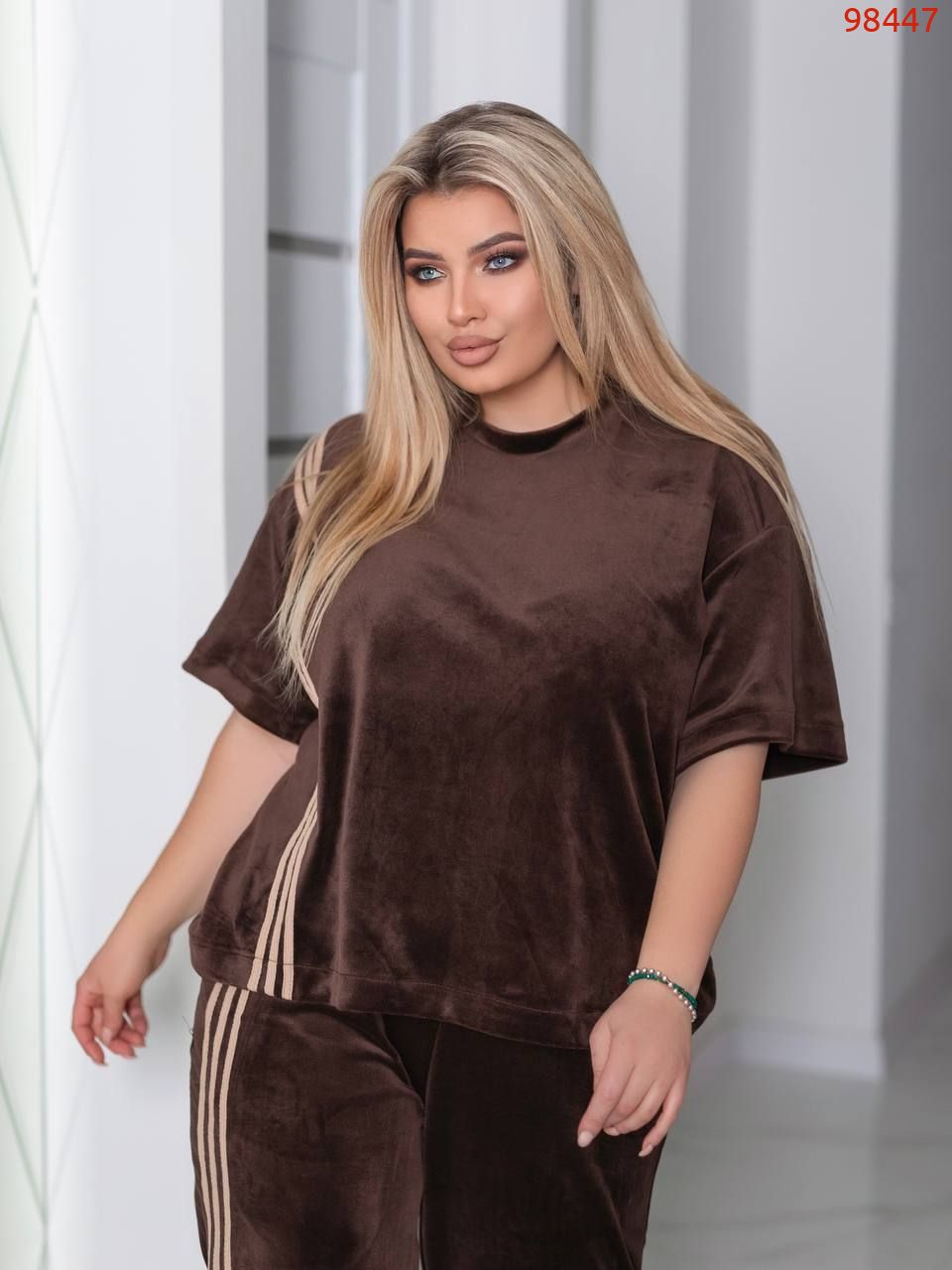 Костюм велюру – це ефектне поєднання зухвалості та витонченого шику. М’яка, оксамитова тканина з характерним анімалістичним візерунком підкреслює впевненість і свободу самовираження, а благородний блиск велюру додає образу глибини та розкоші. Такий костюм може стати акцентом вечірнього виходу або сміливим рішенням для стильного повсякденного лука, підкреслюючи індивідуальність і створюючи ауру невимушеної елегантності.
