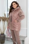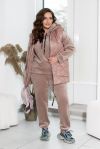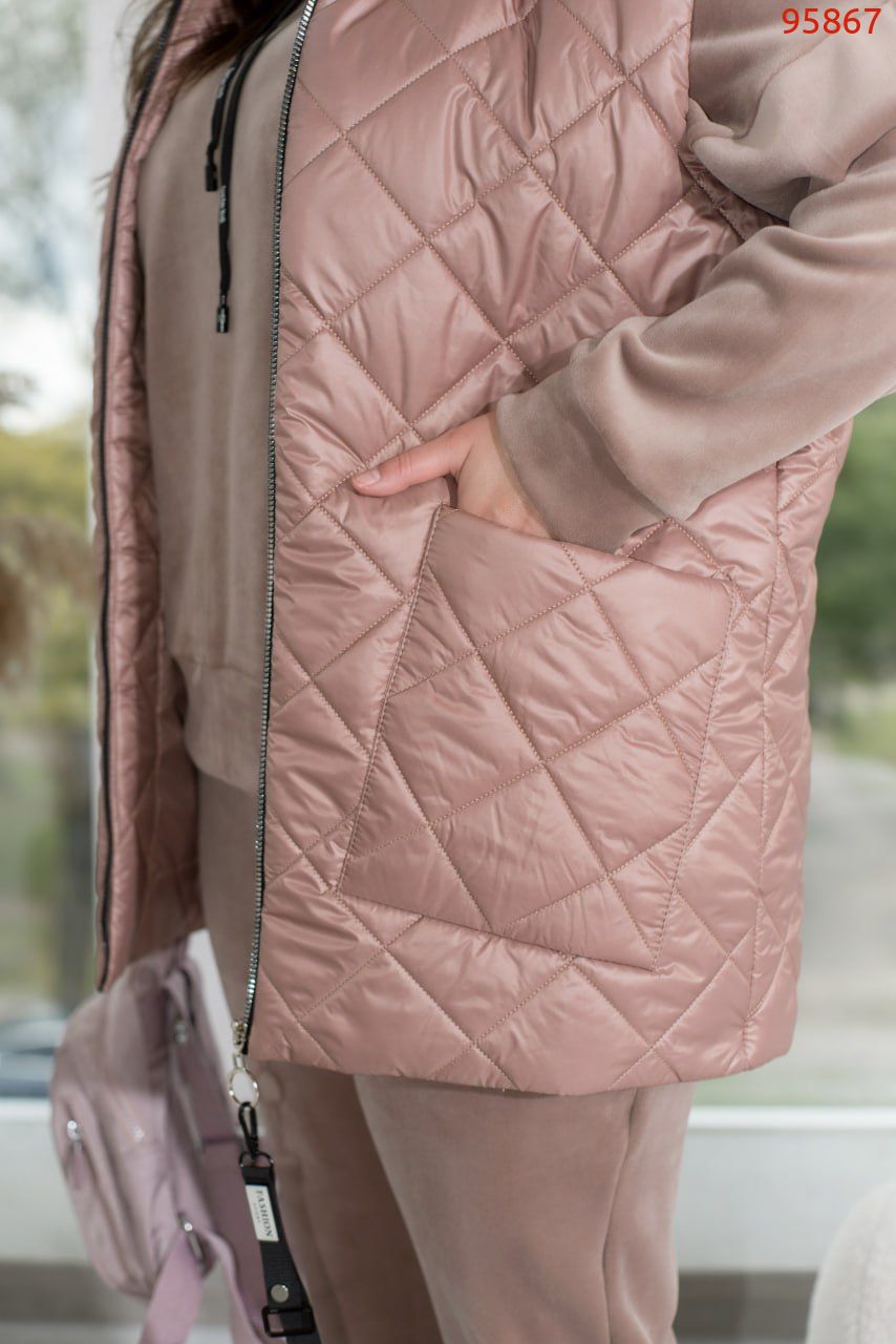 Зустрічайте наш універсальний костюм трійка, створений для стильних і зручних образів у прохолодну погоду. Комплект складається з жилетки з капюшоном та накладними кишенями, кофти зі спущеними рукавами та капюшоном зі шнурком, а також прямих штанів з середньою посадкою і кишенями по боках.Жилетка додає практичності та стилю завдяки капюшону і накладним кишеням. Кофта з капюшоном і спущеними рукавами створює невимушений і затишний образ. Прямі штани з середньою посадкою забезпечують комфорт і стиль. Вони практичні завдяки кишеням по боках і низу на резинці. Цей костюм – вибір активних жінок, які цінують якість і стиль.Ідеальний варіант, для жінок, які поспішають та полюбляють бути в комфорті. Доповніть образ кросівками чи об'ємними чоботями