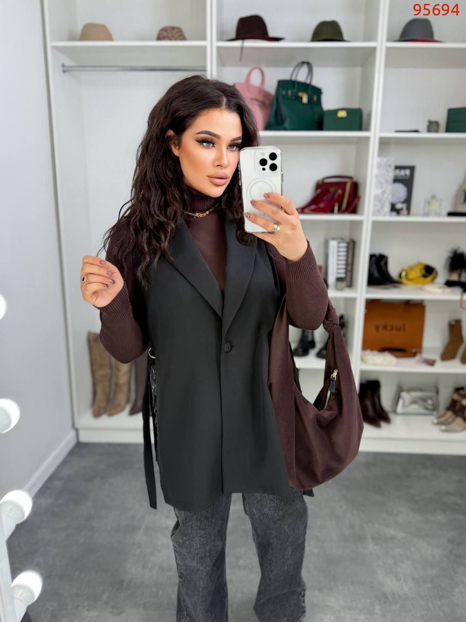 Стильна універсальна жилетка, яка підійде як на ділові зустрічі, так і на прогулянки. Можно носити під гольф або кофтинку )