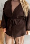 Короткий кардиган із надзвичайно м’якої та приємної на дотик тканини подарує вам комфорт і стиль у прохолодні дні. Його лаконічний крій і зручні вшиті кишені роблять його практичним вибором для будь-якого образу. Пояс у комплекті дозволяє підкреслити талію та створити елегантний силует. Ідеальний для повсякденних виходів, він додасть вашому стилю легкості, затишку та витонченості.
