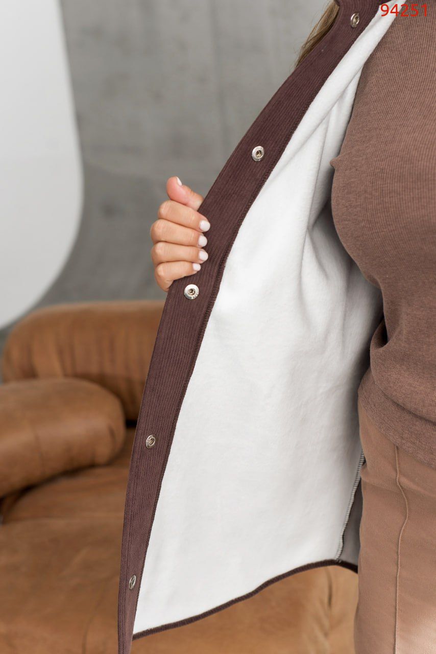Сучасна інтерпретація класики – сорочка-кардиган із м’якого вельвету на флісі. М’який вельвет із ніжним флісовим підкладом дарує відчуття затишку навіть у прохолодні дні, зберігаючи охайний вигляд. Модель має відкладний комір, занижену лінію плеча та рукави з манжетами на кнопках, що підкреслюють легку невимушеність силуету. Спереду передбачена практична нагрудна кишенька, яка додає образу стильного акценту. Сорочка застібається на кнопки, що робить її зручною у щоденному носінні. Це універсальна річ, яка легко поєднується з джинсами, брюками чи спідницями, створюючи комфортний і водночас елегантний образ.
