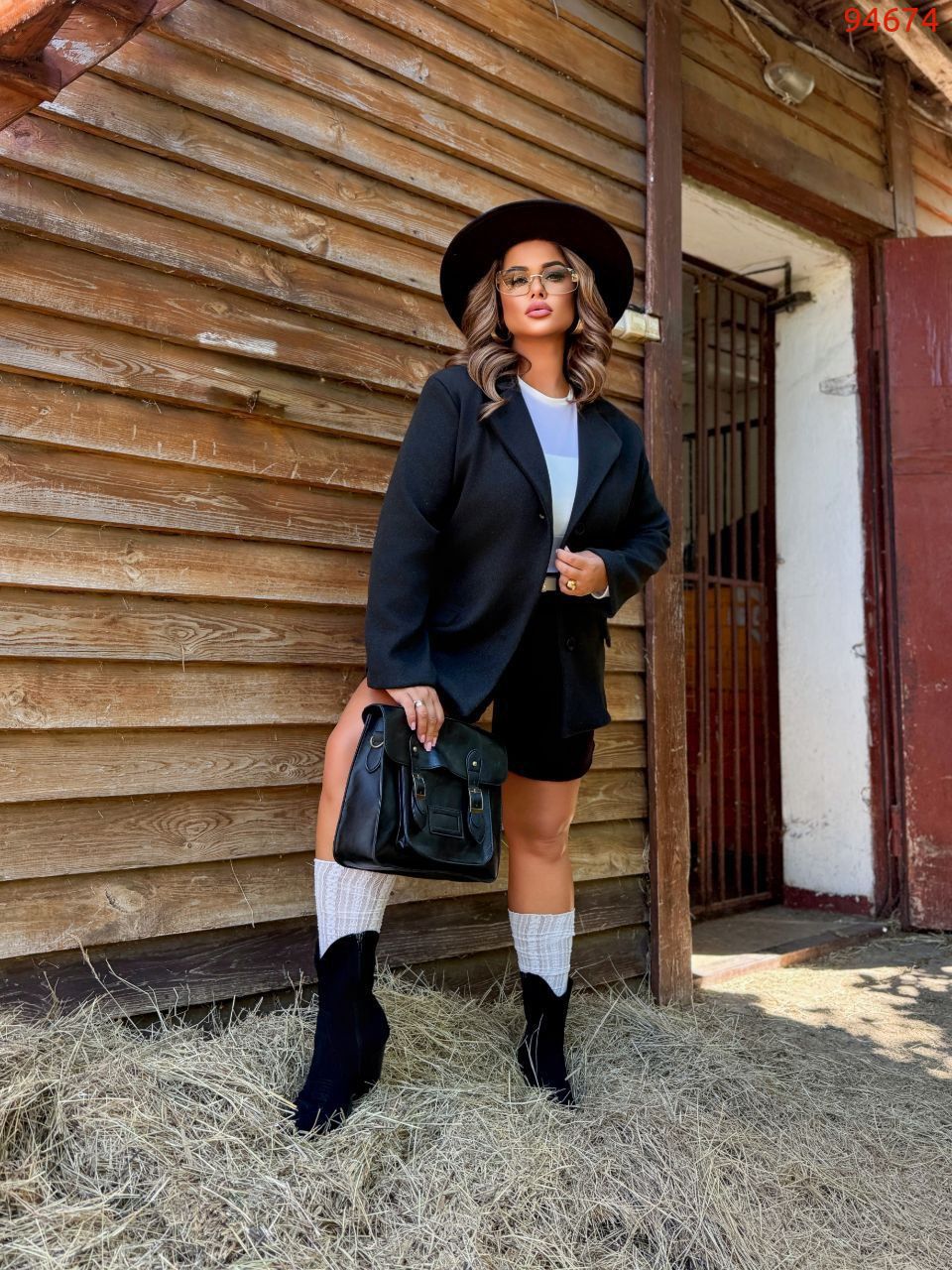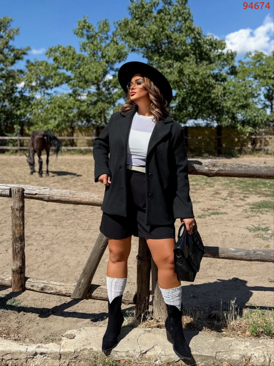 58-60 Об'єм грудей - 132 см, Висота піджака - 80 см, Довжина рукава - 60 см, Об'єм талії -132 см, Об'єм стегон - 132 см.