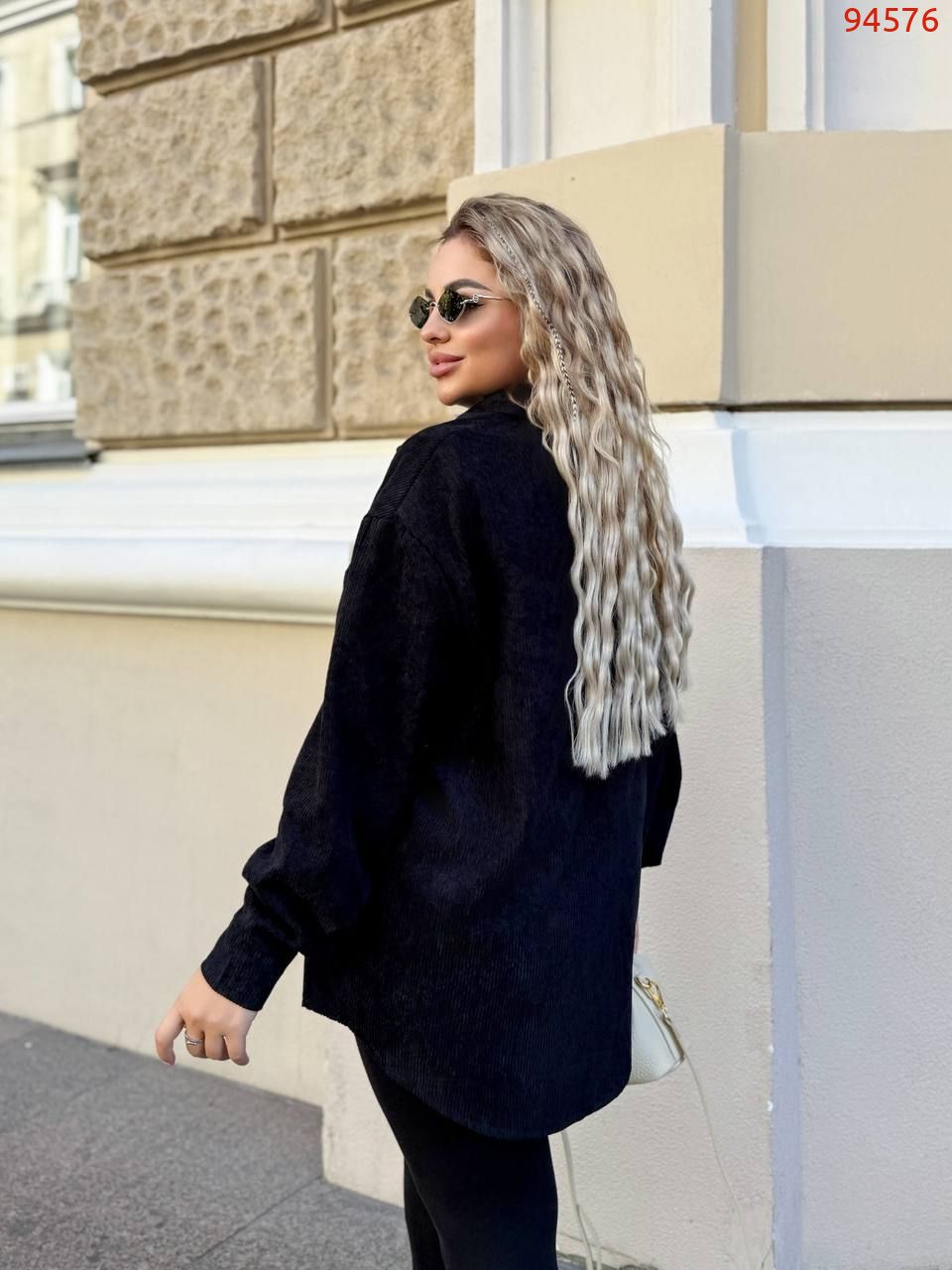 52-54 ог и об 130 см, длина 76 см, рукав 56 см.