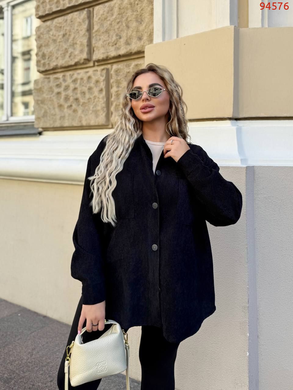 48-50 ог и об 120 см, длина 75 см, рукав 55 см.