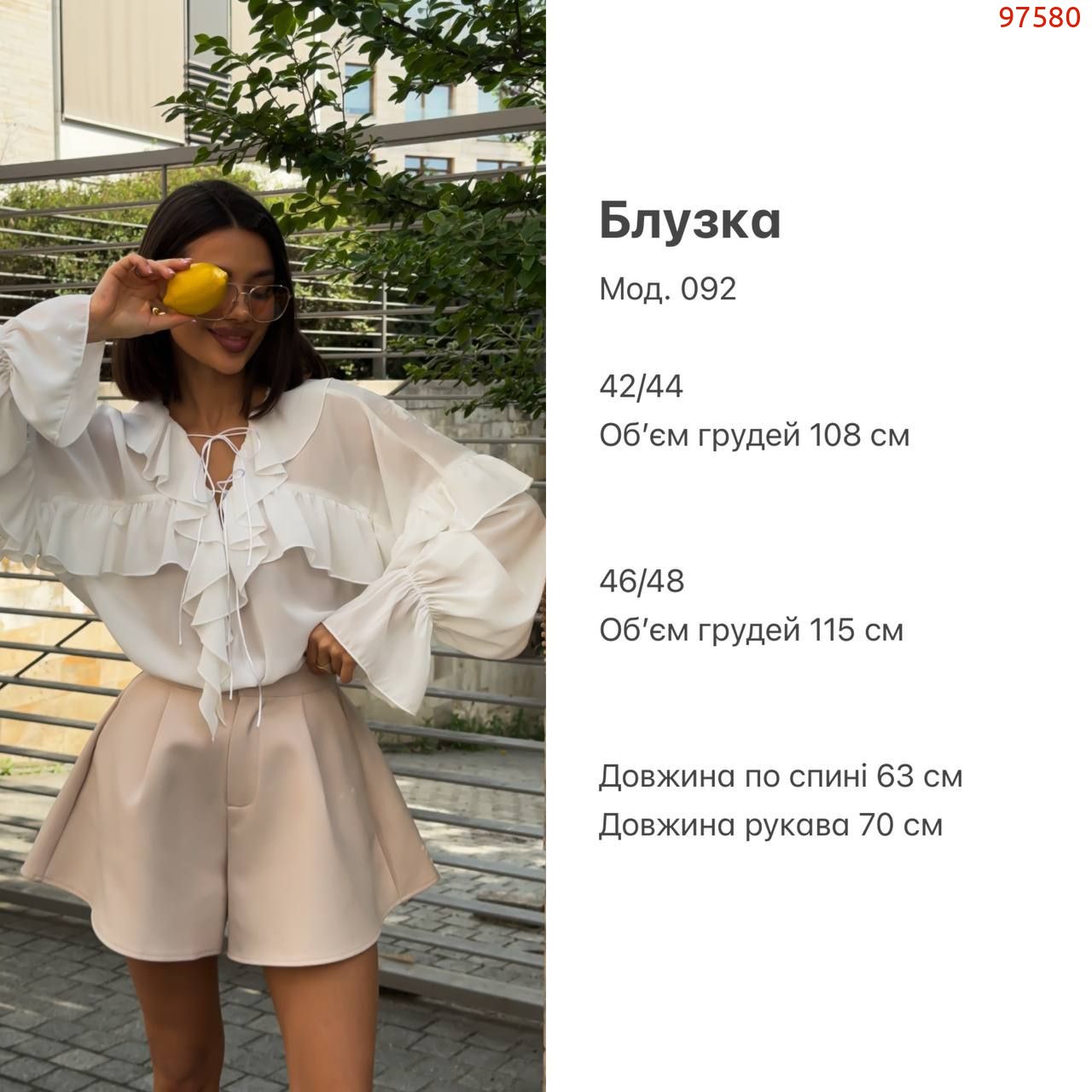 Блузка молочного кольору №97580