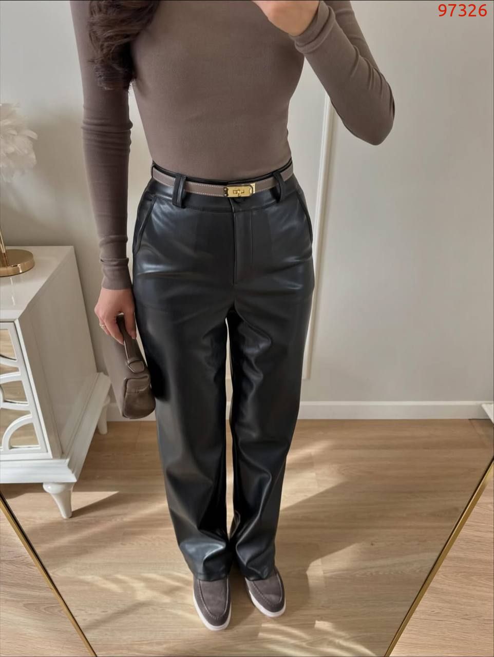 Матові шкіряні штани вільного кроюВисока посадка ідеально підкреслить вашу фігуру, а подовжені штани візуально зроблять вас вище