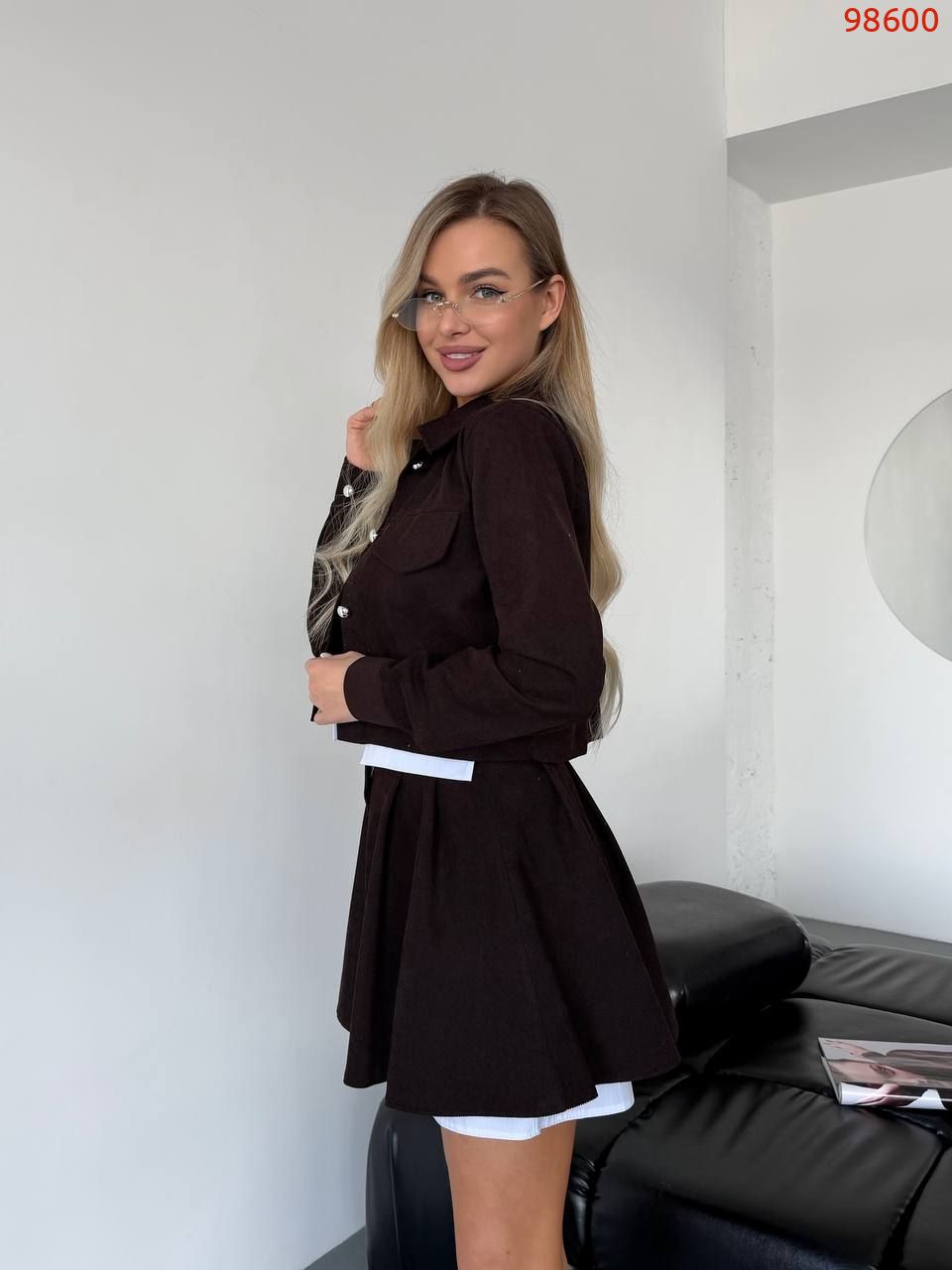 Костюм (жакет та спідниця-шорти) шоколад №98600