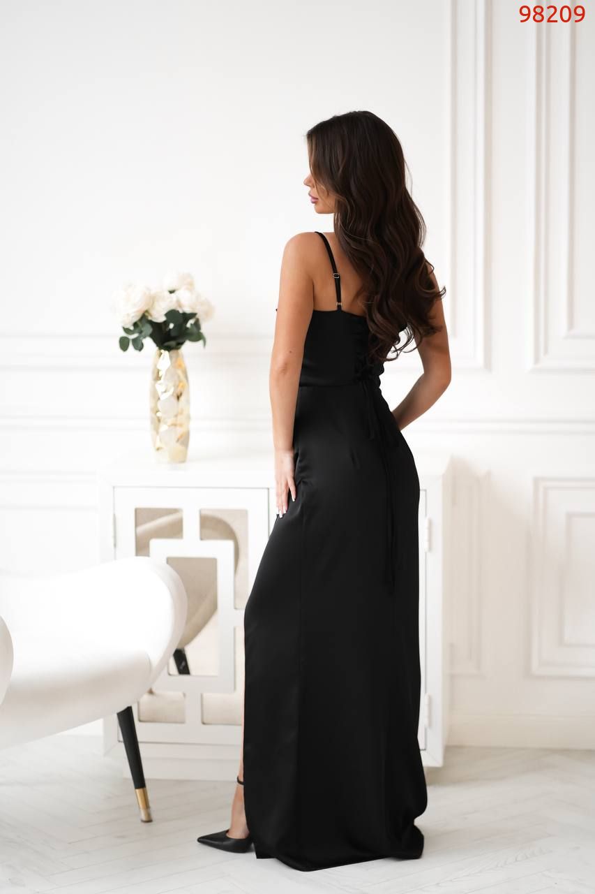 Атласна сукня з корсетною спинкою чорна №98209