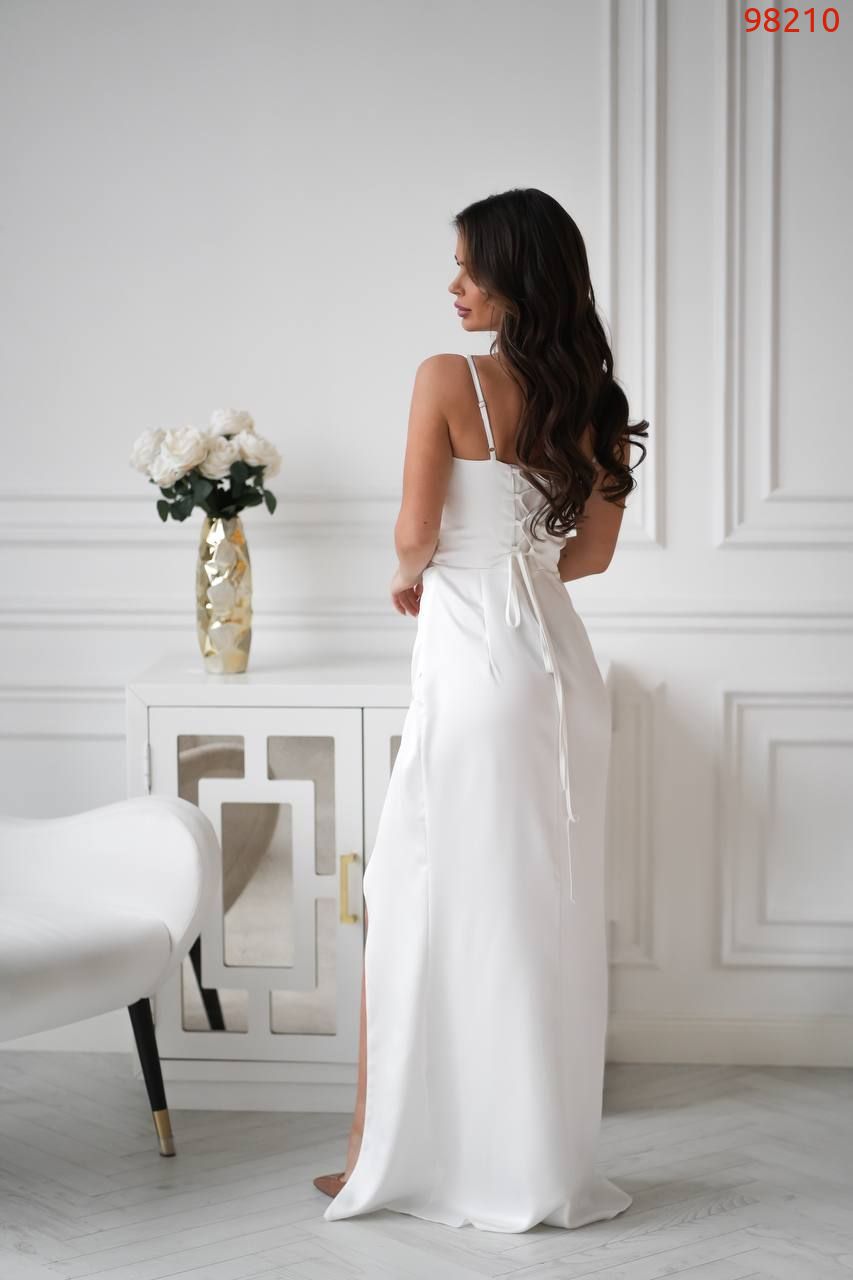 Атласна сукня з корсетною спинкою молочна №98210
