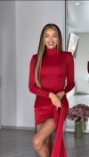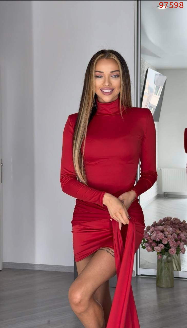 Елегантна сукня в довжині міні в приголомшливих модних відтінках цього сезону. Крій сукні підкреслює фігуру, а акцентне драпірування створює витончену лінію талії, витягуючи силует та притягуючи погляди.