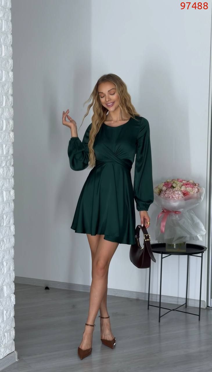 Ніжна , жіночна, легка сукня , яка ідеально підкреслить твою красу Імітація запаху на талії , створює V подібний виріз, і підкреслює фігуру