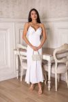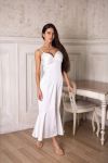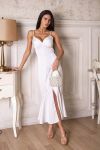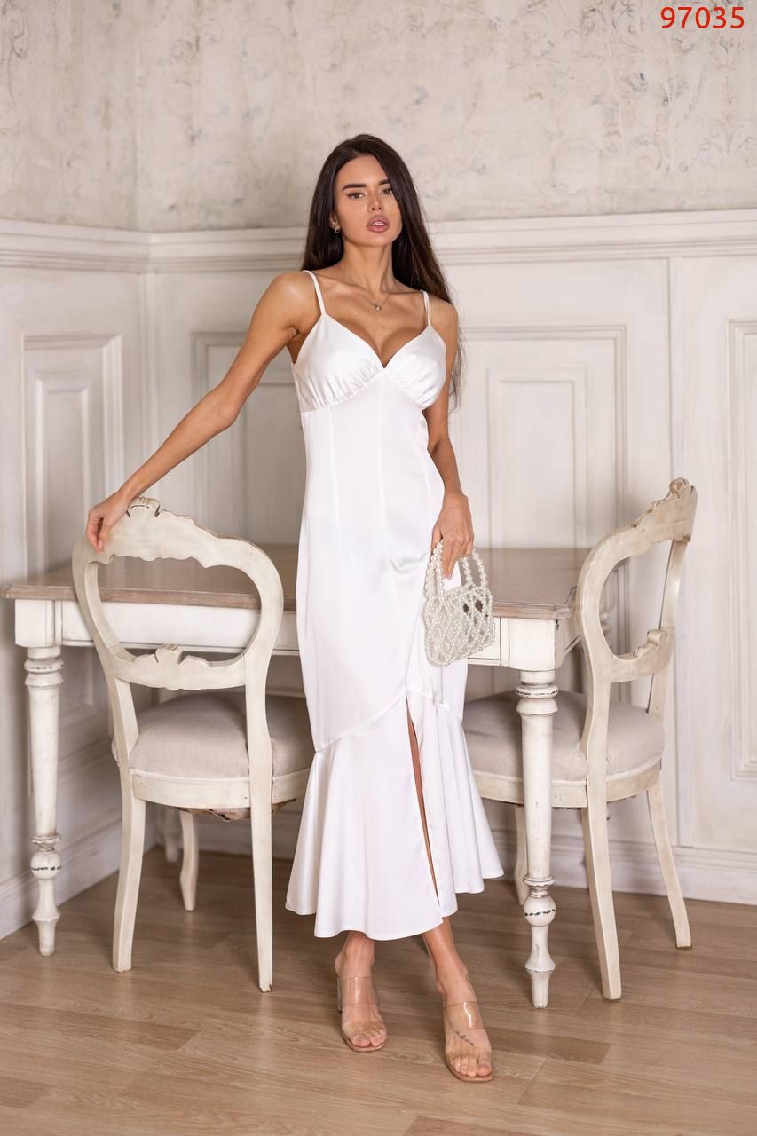 Легкий розкльошений низ із кокетливим розрізом додає образу руху та легкої чуттєвості, а м’який сатиновий блиск тканини робить сукню ідеальним вибором для свята, вечора у ресторані чи зйомки.