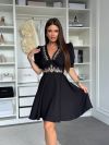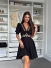 Елегантна сукня з V-подібним вирізом і вишивкою в зоні декольте та талії. Модель з об’ємними рукавами та розкльошеною спідницею підкреслює фігуру та надає образу ніжності й вишуканості.