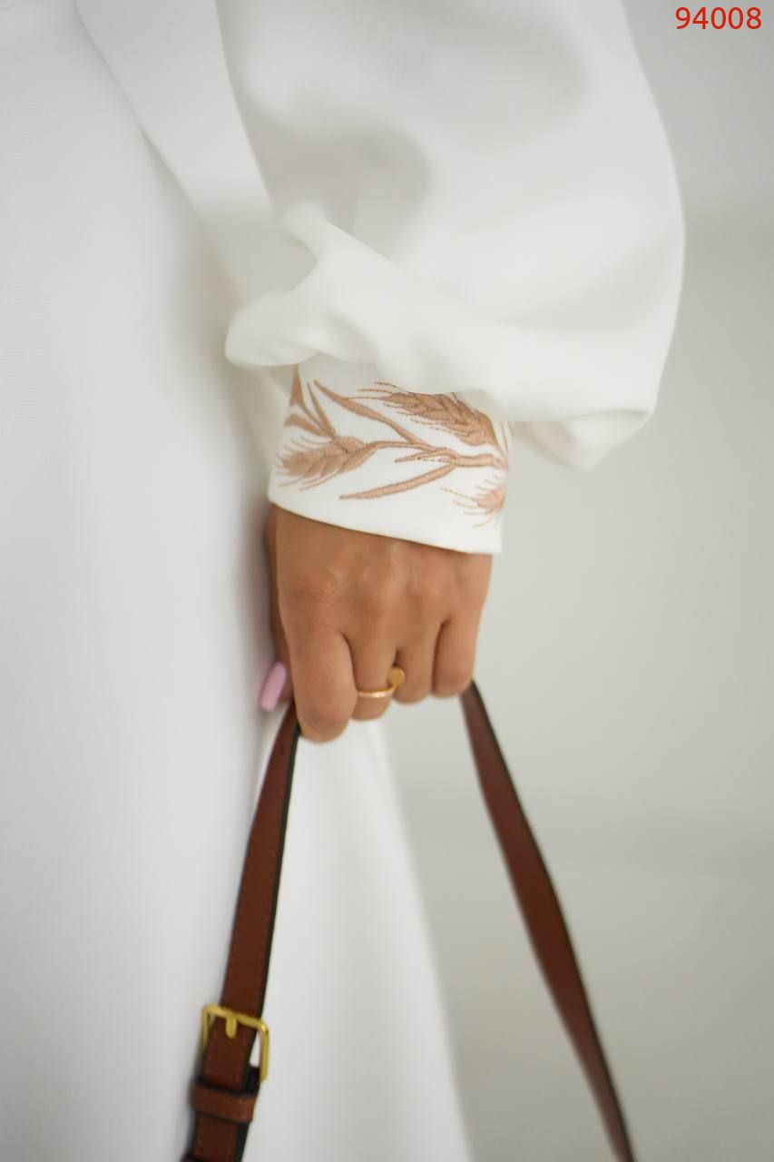 Контрастна вишивка на талії та манжетах підкреслює увагу до деталей і створює вишуканий акцент. Ідеальний вибір для тих, хто цінує класику у сучасному виконанні.