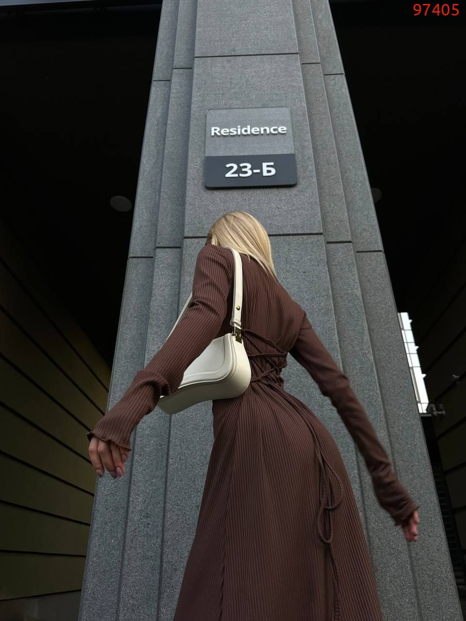 Трикотажна сукня - річ, без якого не обійдется модниця в цьому сезонні. Ми вам пропонуємо ось такий варіант довжини міді, на спині має шнурівку ,завдяки чому, гарно сяде на будь-яку фігурку. З такою сукнею легко створити витончений і жіночий образ