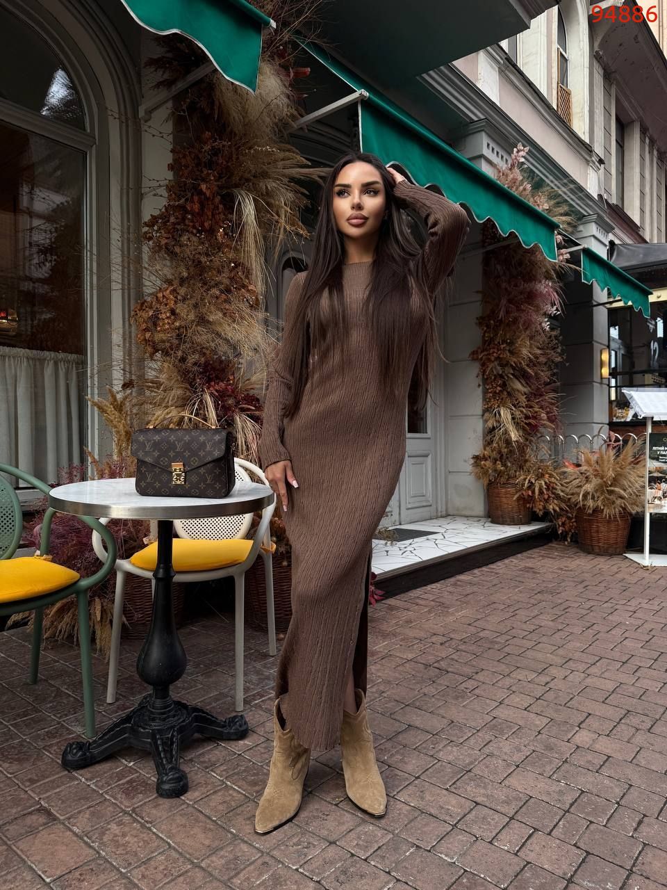 Тканина: Трикотажна сукня максі. Базова модель облягаючого крою з довгим рукавом