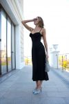 Сукня з ніжного даблшовку з акцентом на декольте - збірка на чашках візуально додає об'єм і підкреслює форму. Ефектний розріз на нозі додає витонченості та легкості. На спині - прихована блискавка та регульована шнурівка з корсетною імітацією для ідеальної посадки по фігурі.