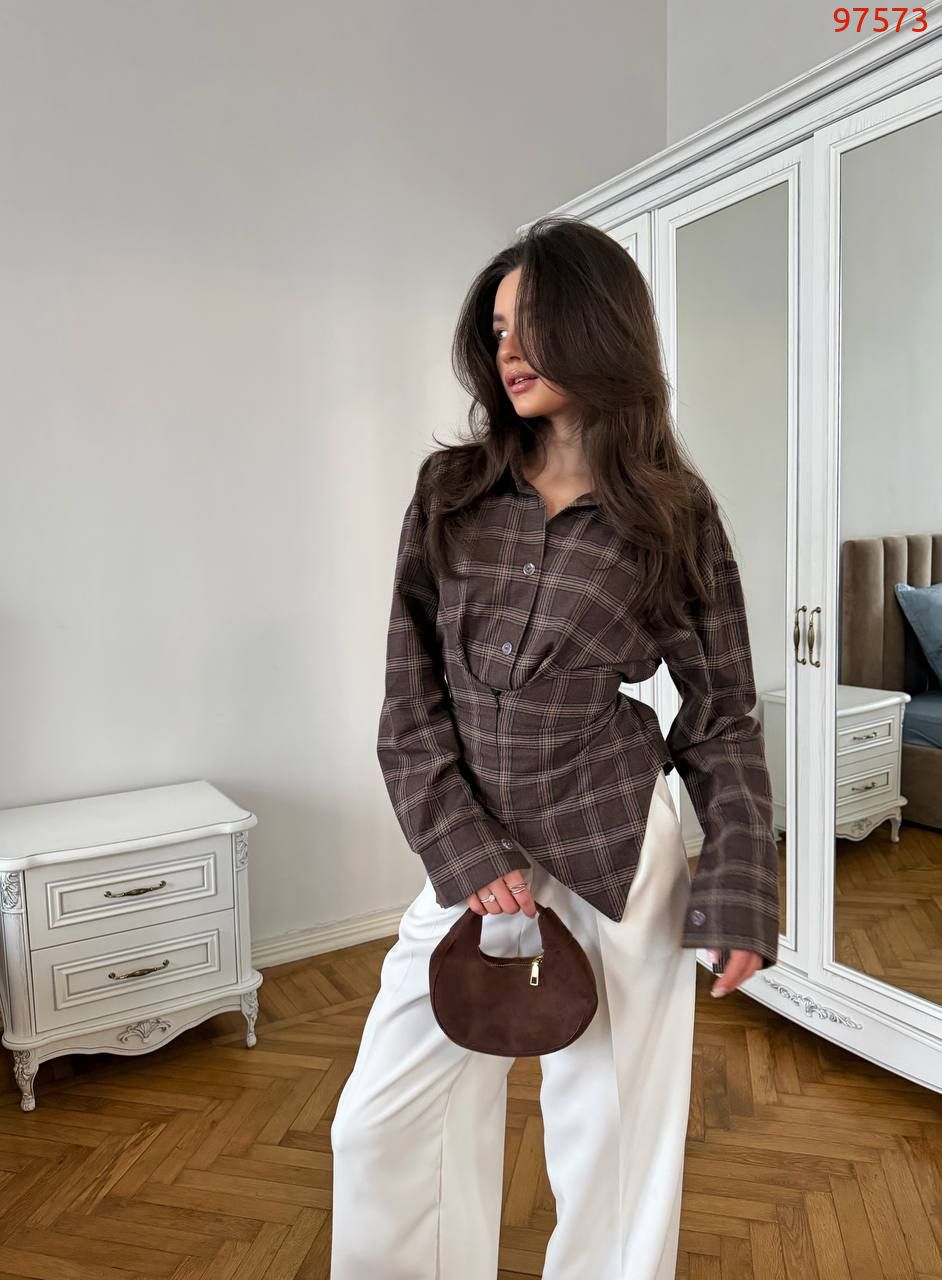 Асиметрична сорочка з акцентом на талію. Трендова форма, комфорт і стиль в одному виробі.